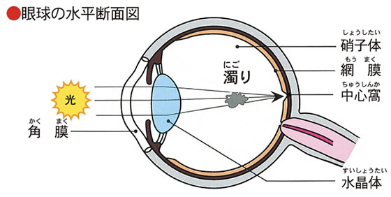 通常硝子体の組成はゼリー状の物質ですが、20歳ごろを過ぎてから硝子体は徐々に濁っていきます(硝子体混濁)。